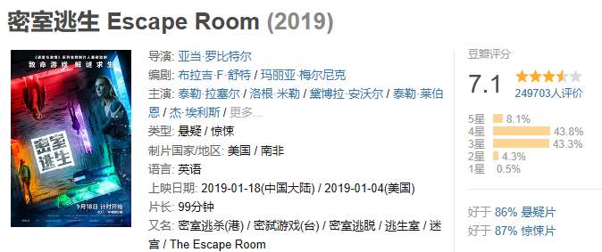 六位身份各异的陌生人,为赢取高额奖金,在神秘盒子的指引下受邀参与世界顶级密室逃脱游戏。谁知密室内布局精良机关重重,陷阱遍布杀机暗藏。是刺激游戏,还是博命赌局?谁在背后操控这一切?谁能够成功破解谜局,逃出生天?