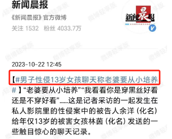 更让人不寒而栗的是,就像我开头提到的,这个男子还曾口出狂言“老婆就是要从小培养”,