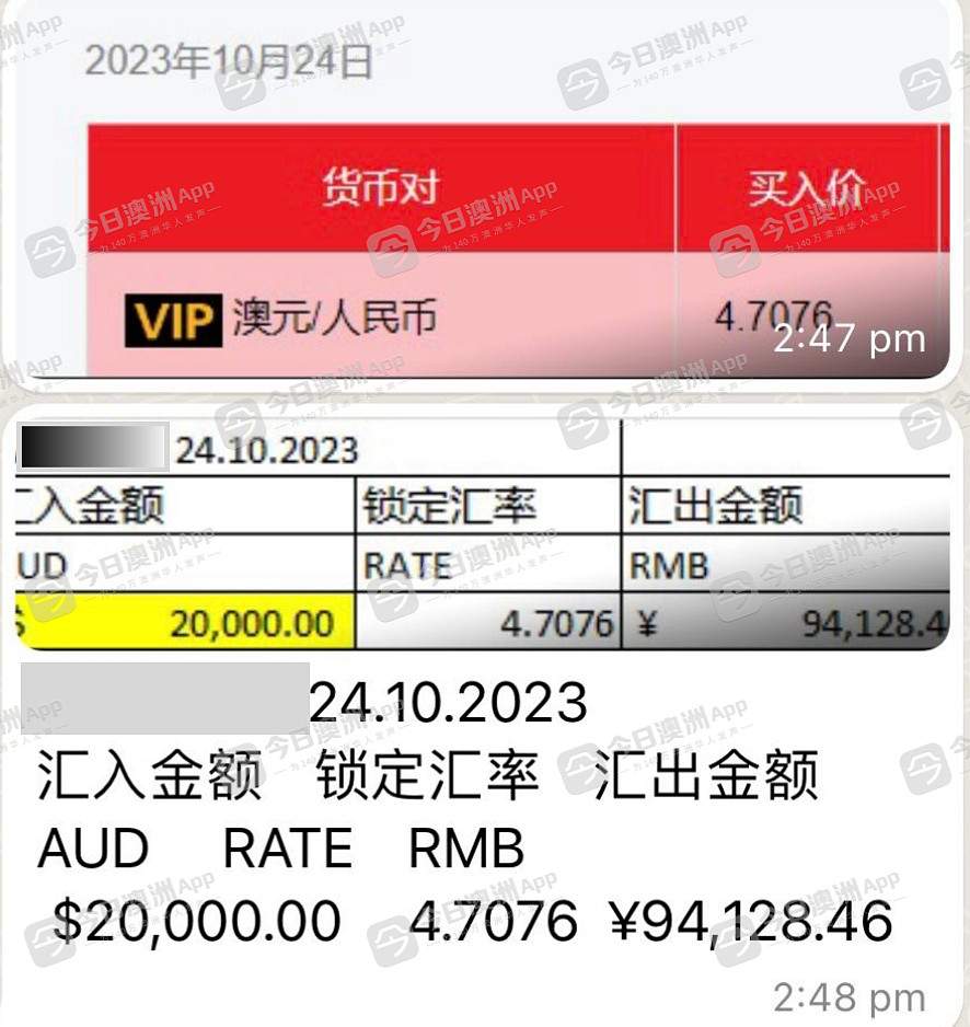 Candy与小K有着相同的境遇,她于本周一和周二,使用“长江换汇”分2次将4000澳元汇往中国。