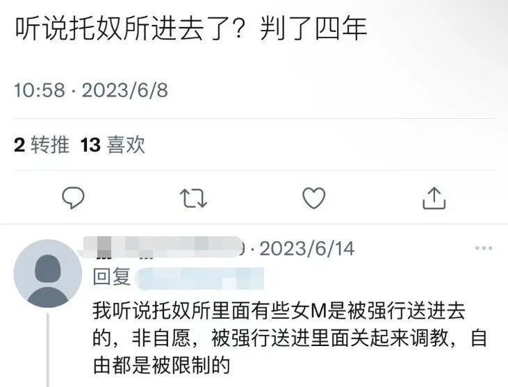这位粉丝在推特上面看到了一个专门经营托管女奴的推主,