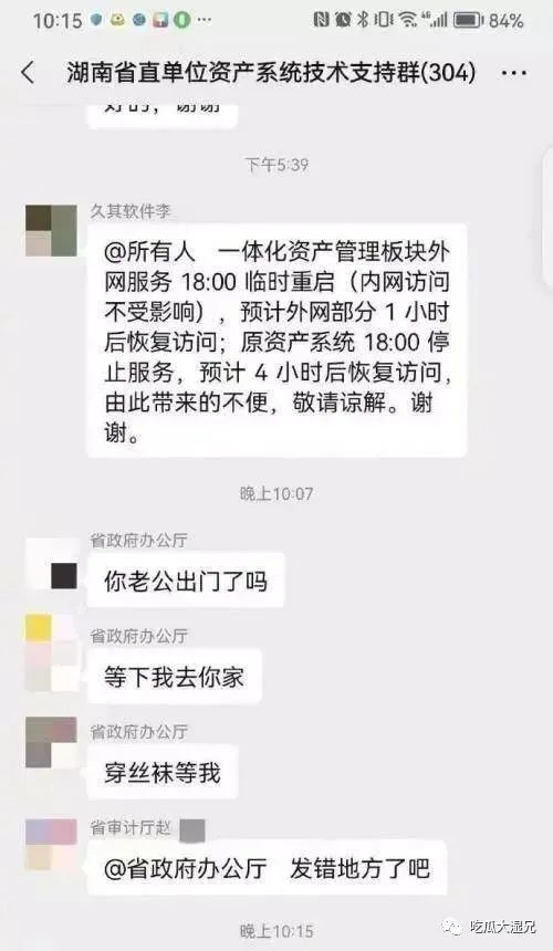 在一个官方工作群里,有标注着“省委办公厅”的同志忽然连发3条不雅信息: