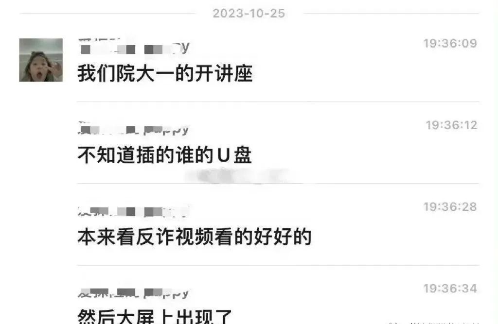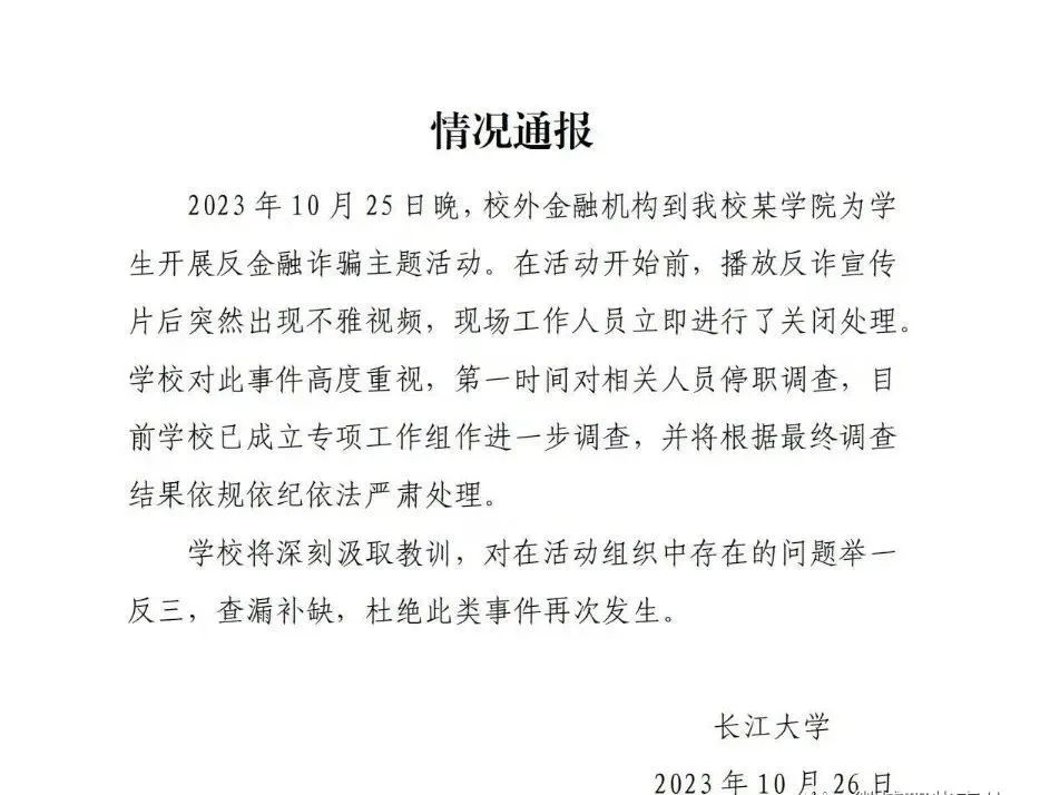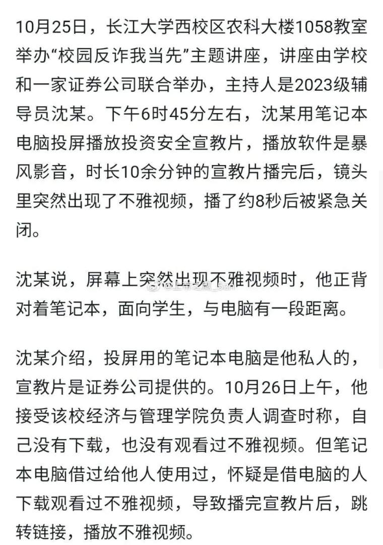 10月25日,长江大学主题讲座突然播放不雅视频。