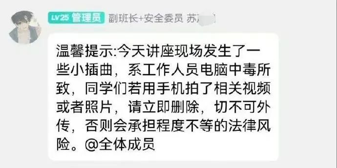 而“副班长”温馨提示中所说的“电脑中毒所致”,更让人想起来前段时间那个令人啼笑皆非的“丝袜病毒”。