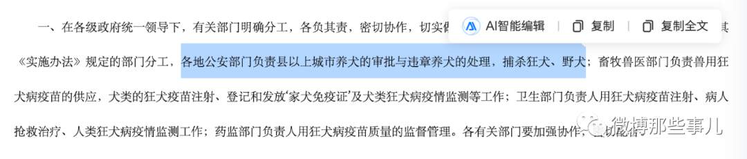 但是,网友找出了1984年《生部、农牧渔业部、公安部关于加强狂犬病预防控制工作的通知》第五条: