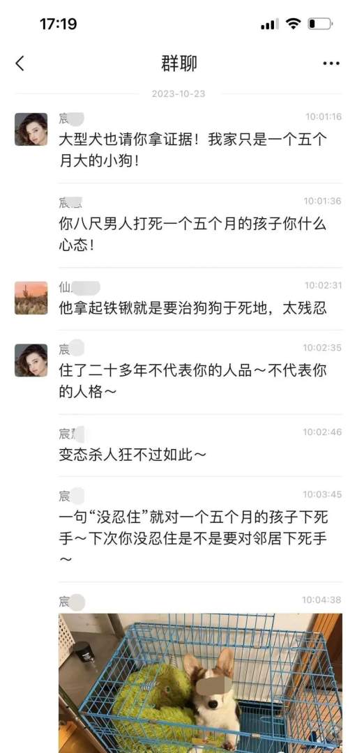 10月23日,贵州贵阳一名男子持铁铲打死了一只未拴绳的狗引发争议,据微博博主@填鸭式教育受害者 爆出的小区聊天截图,大致还原了当时的事发经过。
