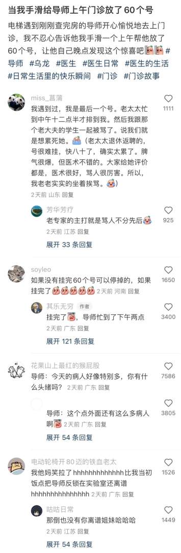 手滑帮导师上午门诊放了60个号。