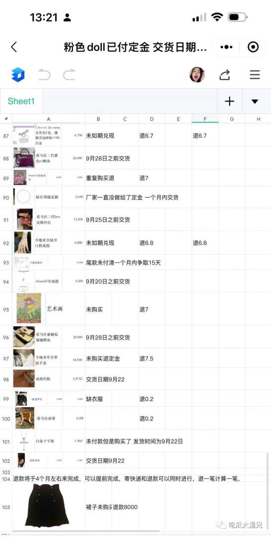 据其透露,张大奕用非常低的价格,购买了几个代购商品,一开始是正常交易的。