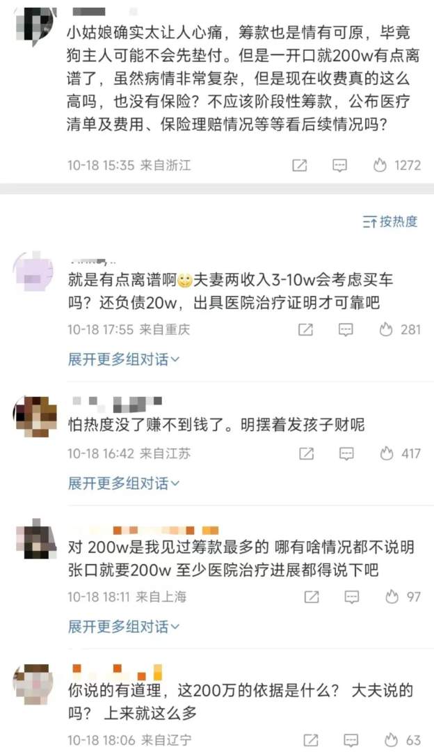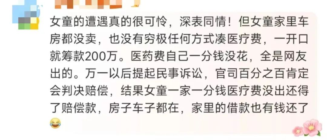 很多网友质疑女童家长众筹的行为