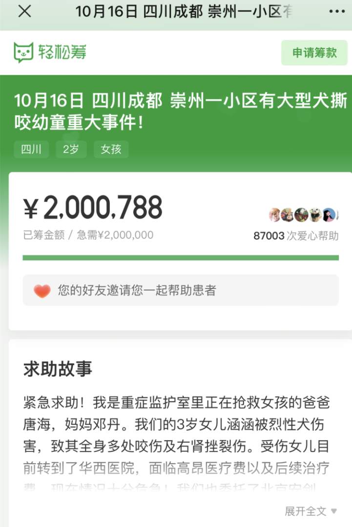 女童家属发起200万元筹款