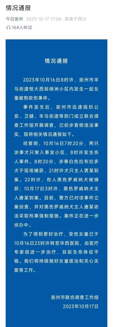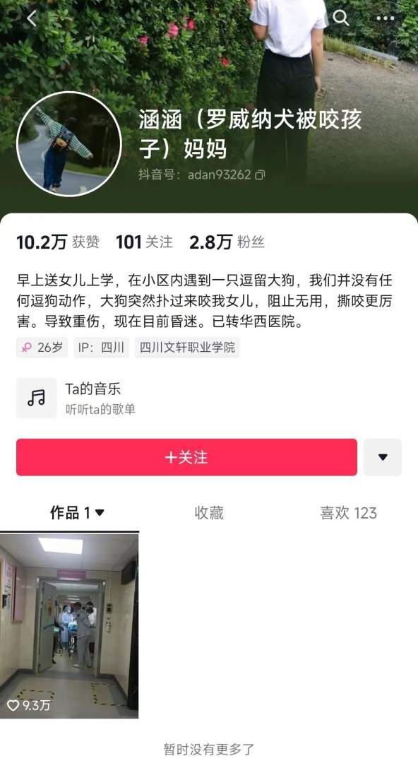 后续!四川撕咬2岁女童的伤人烈犬和狗主人均已找到!将面临三年以上七年以下有期徒刑