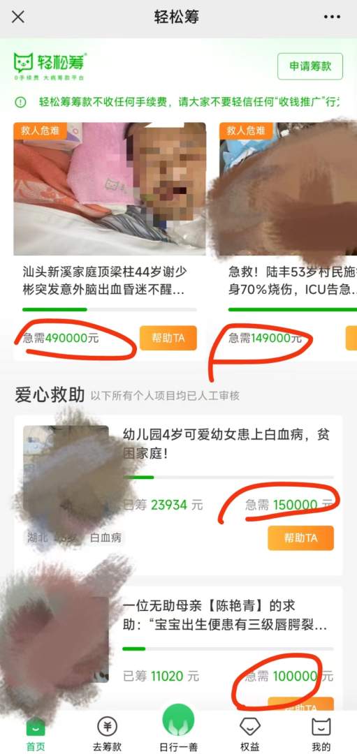 要么是只筹够少量的医疗费就结束