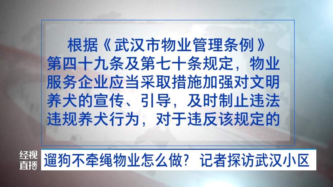 根据《武汉市物业管理条例》中的第四十九条及第七十条规定,“物业服务企业应当采取措施加强对文明养犬的宣传、引导,及时制止违法违规养犬行为”,对于违反该规定的“由公安机关责令限期改正,逾期不改正的,处一万元以上三万元以下罚款”。