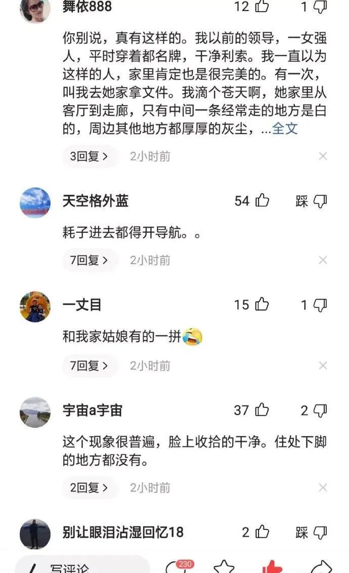 丨杨大仙丨:我有次送外卖,在一豪华小区里,一层四户,两户一个电梯,其中我送的那家隔壁没人住,我送的那家是一个女的,应该是在家搞直播的,出了电梯门就被一堆垃圾包围,如果门是外开的话,肯定打不开,也不知道多久没出门了,门口的垃圾都堆了半米高了,什么泡面桶,饮料瓶,烂衣服,烂被子,还有直播的照明灯