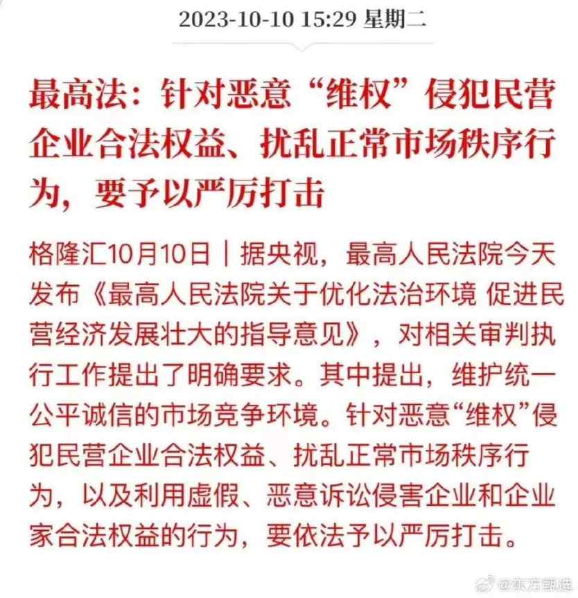 并且配图,最高法规定:针对恶意“侵权”侵犯民营企业合法权益、扰乱正常市场秩序行为,要予以严厉打击。