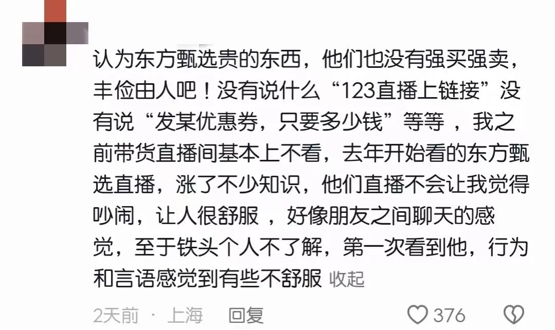 对于作为消费者的广大网友而言,他们都纷纷表示支持东方甄选维护自身权益,而对于铁头的言行感到不适。