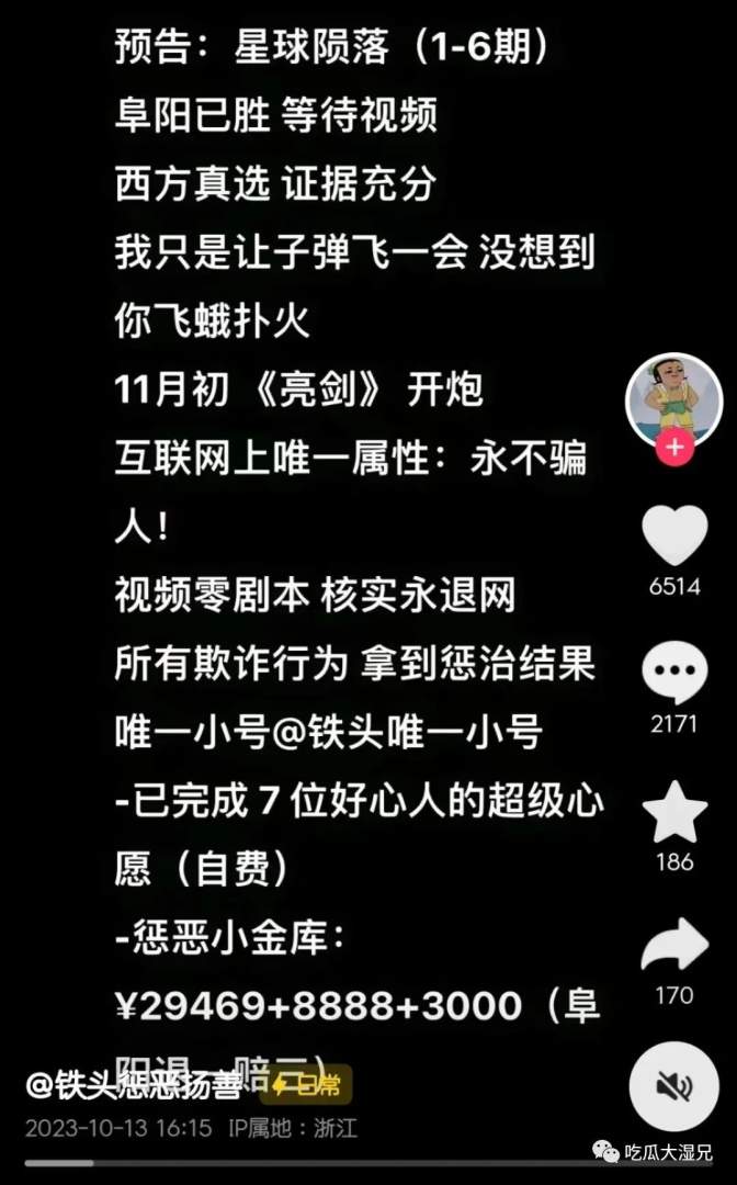 10月13日在他最新发布的“打假预告”里,东方甄选也的确“榜上有名”,并且他还在预告里放话“视频零剧本,核实永退网”。