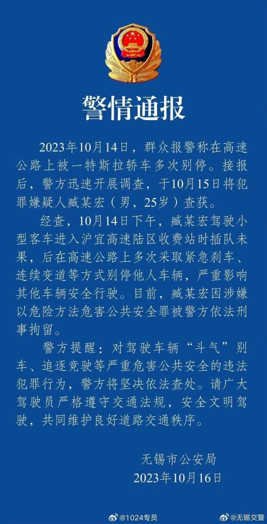 不是简单的扣分罚款,也不是常见的行政拘留,而是以涉嫌以危险方法危害公共安全罪被警方依法刑事拘留。