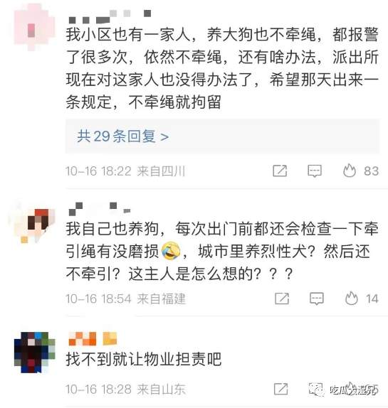 物业公司对业主的质疑拒绝回答。至于狗为什么没牵绳,物业工作人员称,平时也在提醒业主遛狗要牵绳,但有些业主就是不听。