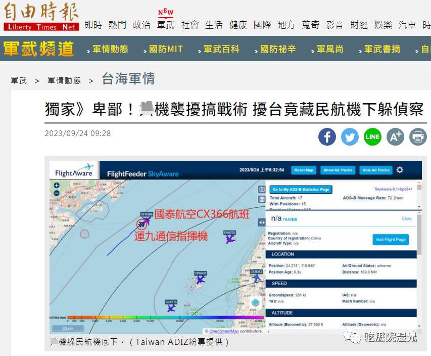 这本是平常无奇的事情。但消息被传到岛内社交媒体网站,有人声称,此举疑似解放军企图以民航机掩护军机,混淆台军的监侦系统。