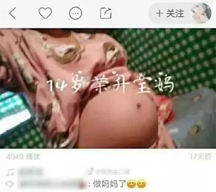 某短视频平台上也见过,14岁女孩笑着晒着自己的孕肚,轻描淡写配上文字“14岁荣升宝妈”。
