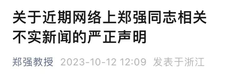 关于近期网络上郑强同志 相关不实新闻的严正声明