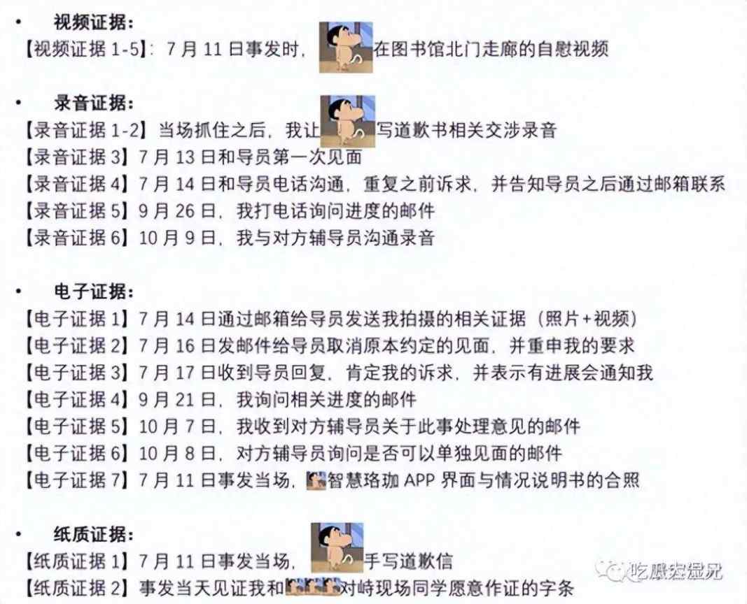 女生帖文中列出的证据清单