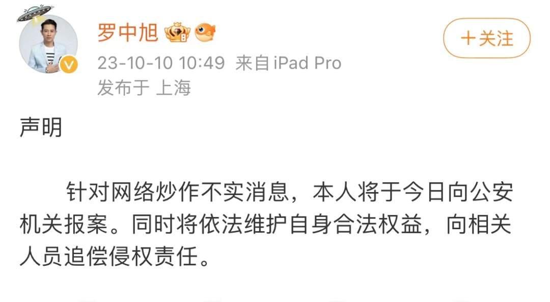 罗中旭发布声明,说网络炒作不实消息,本人将于今日向公安机关报案。