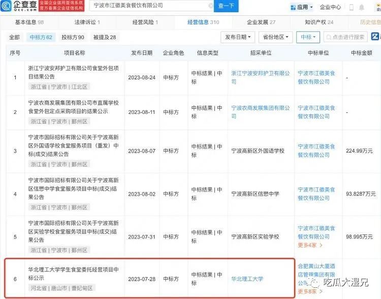 值得一提的是,该公司于7月28日中标华北理工大学学生食堂委托经营项目,距吃出鼠头事件不足三月。