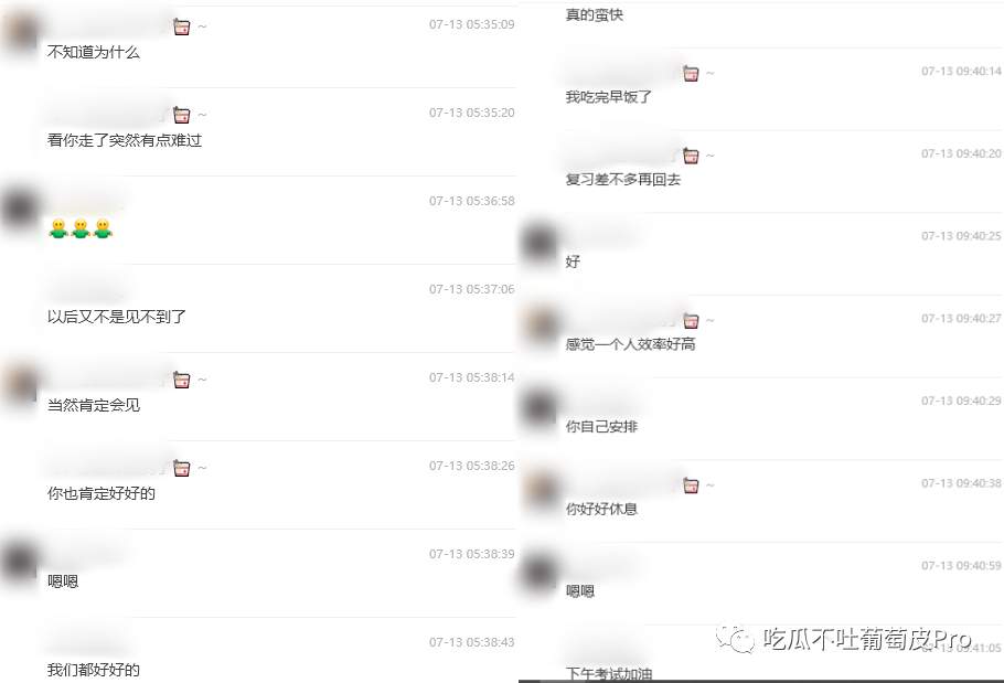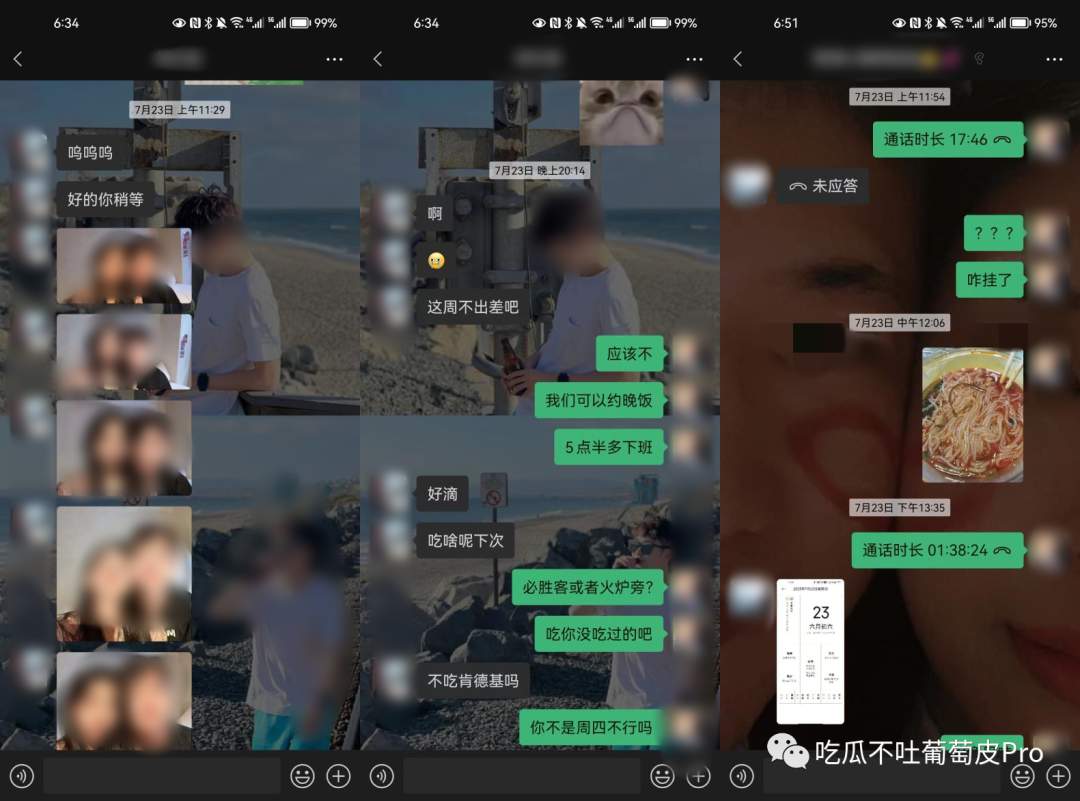 左边为2023年7月23日丁与男1号的聊天记录截图,右边图片为当天跟我的聊天记录截图。