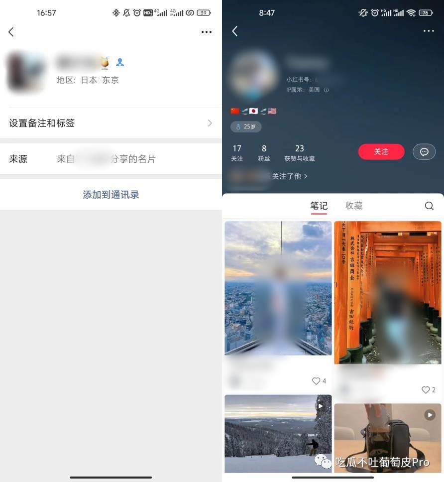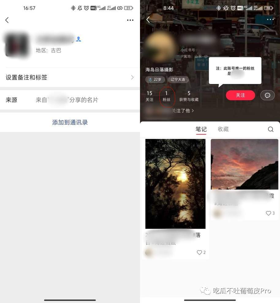 上图中左侧图片为男1号的微信,右侧为小红书账号。