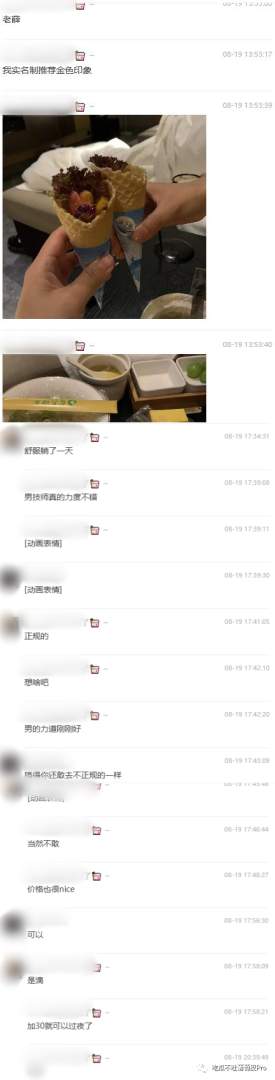 2023-8-19西安外国语大学时间管理大师丁同时给我、男1号、男2号发送在金色印象按摩的照片,跟我和男1号说点的女技师,跟男2号说点的男技师,男的力道足