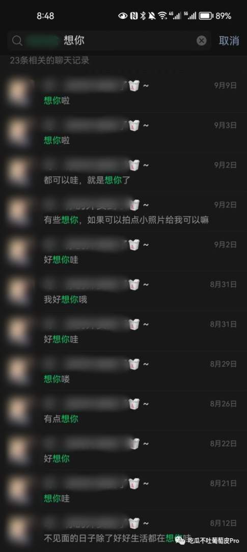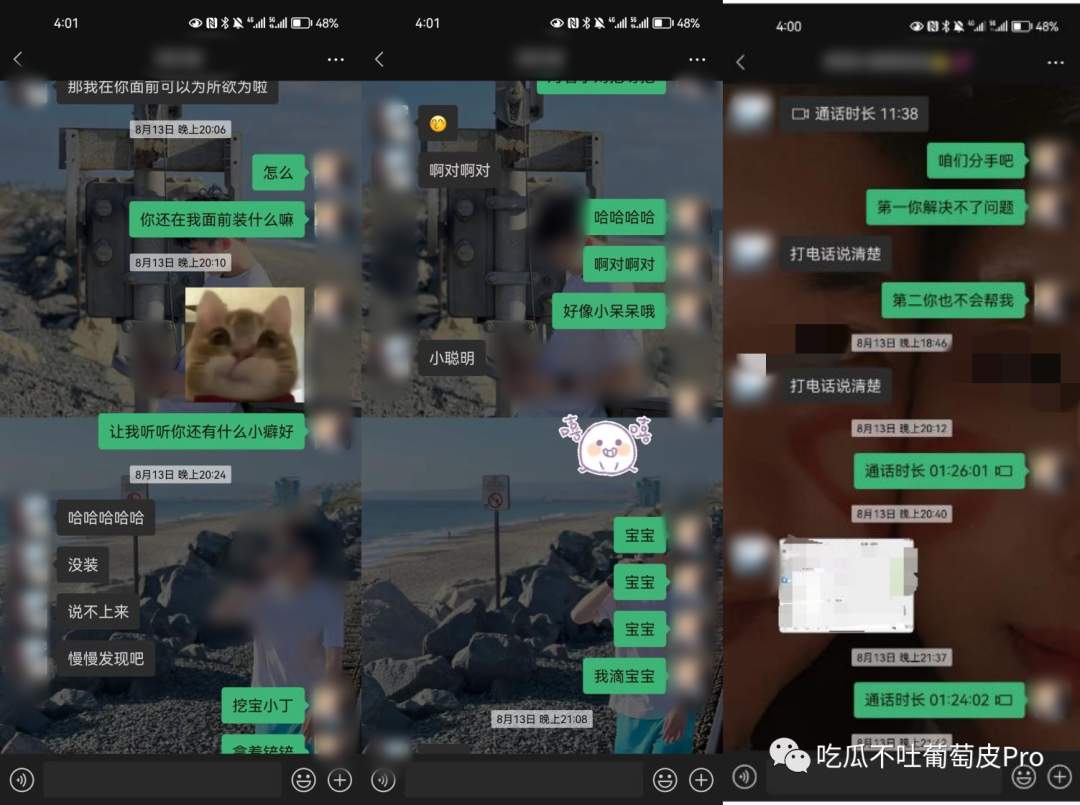 我给你改简历,扭头改完你发给小三问他简历怎么样。7、8月份我跟你说过很多次我觉得你最近怎么总看不到我的消息,你说你在忙着工作看到了就会回,实际上你在忙着秒回小三的消息。我说我们现在都不甜了我以为我们进入平淡期了,结果你把你的爱都给小三了。