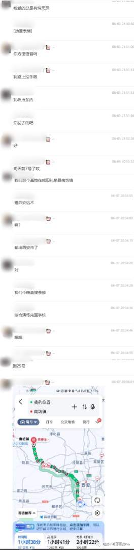 左图为我在跟她商量我于2023年9月23日来西安跟她见面,右图为丁与男1号同一时间的聊天记录