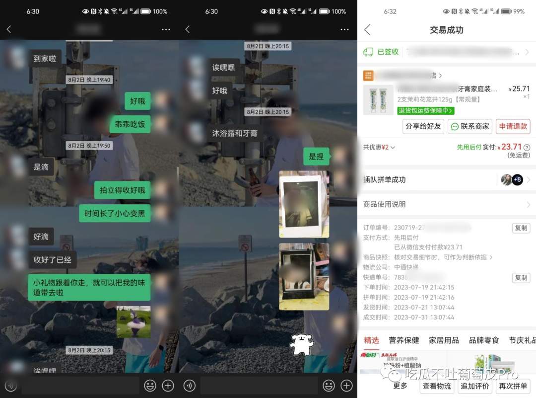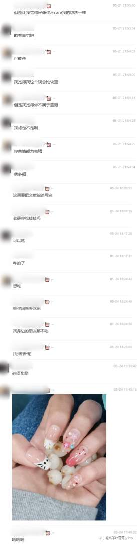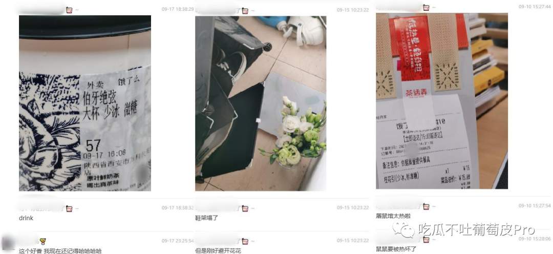 我给丁点的奶茶、买的花、买的外卖她也都会拍照分享给男1号