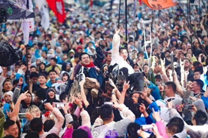 音乐节现场,轮椅男孩被观众托起。图源:@迷笛