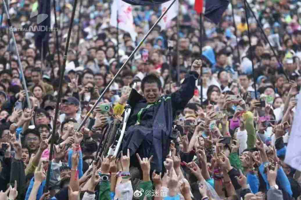 据悉,在音乐节现场,观众将一名坐轮椅男孩高高举起观看演出,男孩在轮椅上振臂欢呼。