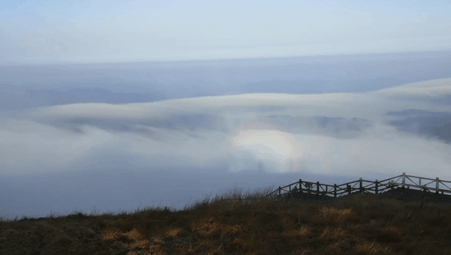 冬天走在山顶,偶遇佛光的几率也比较大哦,