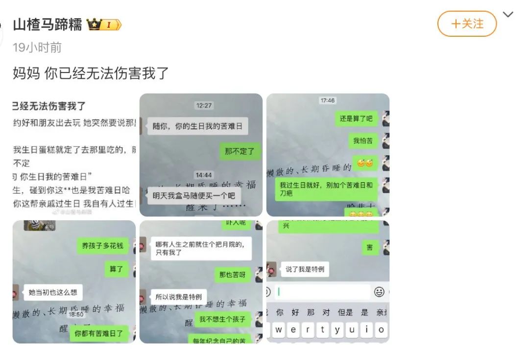 一位微博博主发了一条吐槽妈妈的微博,评论区直接炸了