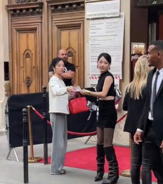 与Lisa同为BLACKPINK成员的Jennie也在疯马秀门口被拍到,她观看了Lisa的演出: