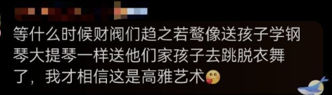 一场脱衣舞表演,对于富人来说或许只是一场资源置换的游戏,又或者根本就是个噱头,但是对于屏幕前千千万万的普通人来说,却可能产生持久的负面影响。