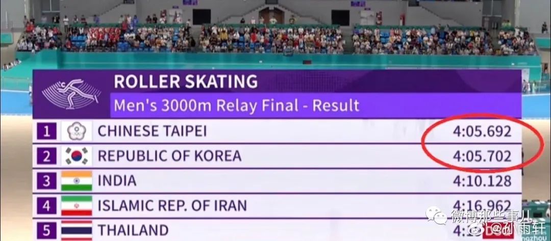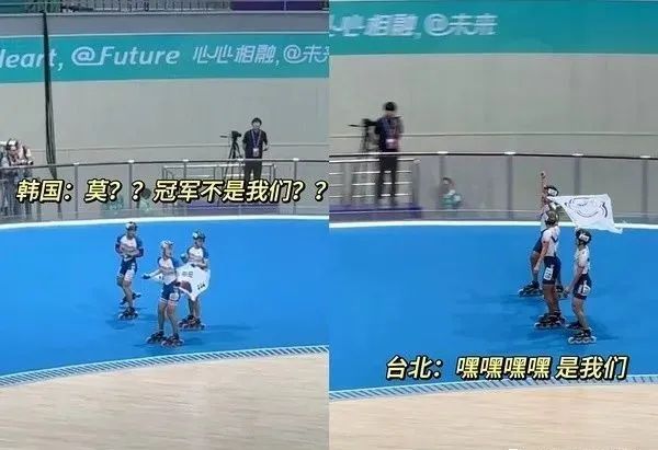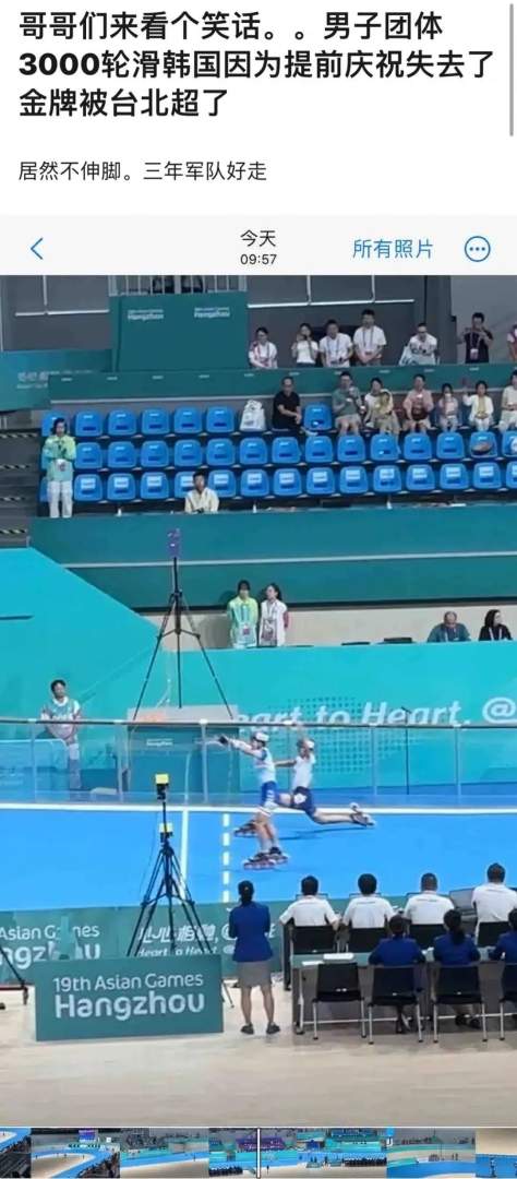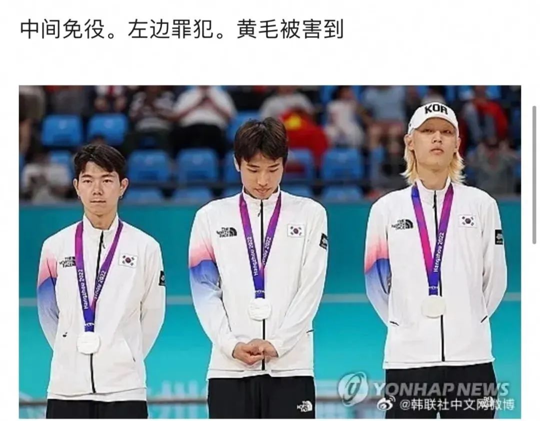 韩国接力队一共四个人,这位终点线前开香槟的郑哲元和另一位赛后流泪离场的队友没有金牌,其他两位队友有单项金牌不用服兵役。