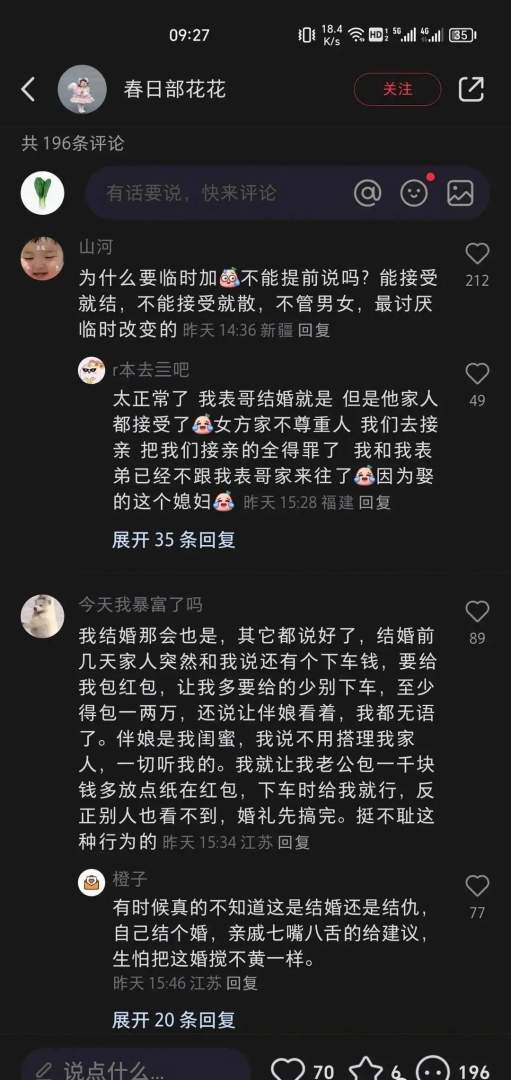 这是我们可以自由支配的600,我们全家也都觉得高兴,当时的价格一般给400,姐夫大方,我爸妈觉得有面子。彩礼一共6w,但是陪嫁的所有家具电器加起来我们是纯亏的哈哈哈哈。结不起婚就别结,玩不起就别玩。你是金镶玉啊,最讨厌这种亲家