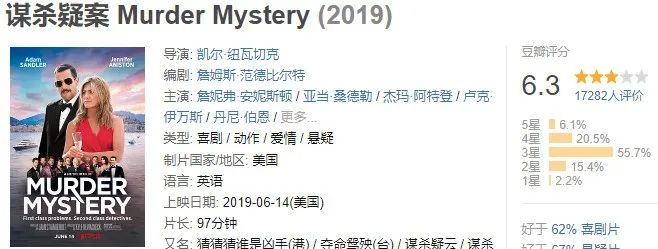 阿加莎泛儿的谋杀案搞成各种欢乐搞笑的喜剧,全是老梗儿凶手也好猜。看的开心高兴就好!最后还坐上了东方列车。两个演员都超级喜欢,哪怕现在很多人都说他们已经flop了。可是照样一看到他们还是不自觉的嘴角上扬,安妮斯顿已经50了身材还是保养的那么好,女神就算是老了也是女神。忽那汐里在这里面还显得挺漂亮的,长大了成熟好多!