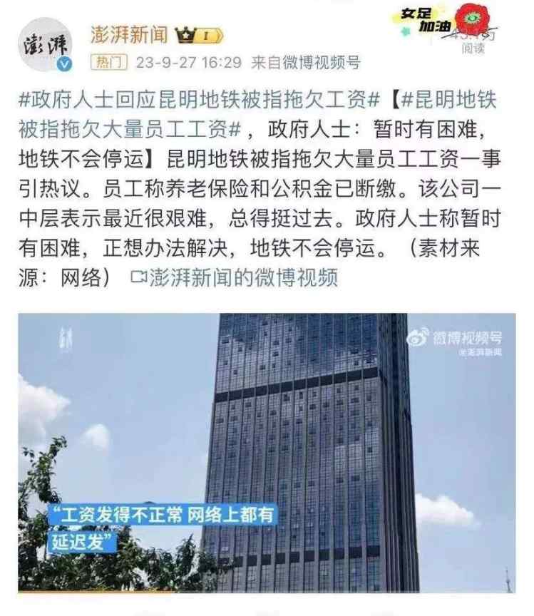 像地铁这样的“铁杆庄稼”,眼看着要绝收了,形势确实有点逼人。尽管当地政府部门一如既往的积极乐观,“正想办法解决,地铁不会停运”,但公众显然还是被欠薪消息惊到了。