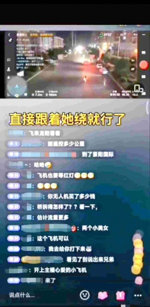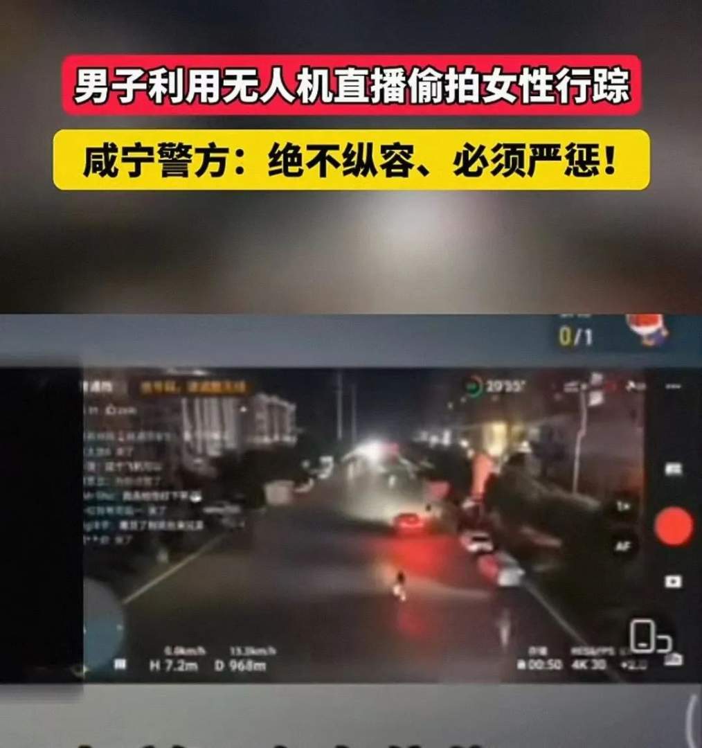 近日 湖北咸宁市一男子 利用无人机跟踪女性还进行直播 引发争议