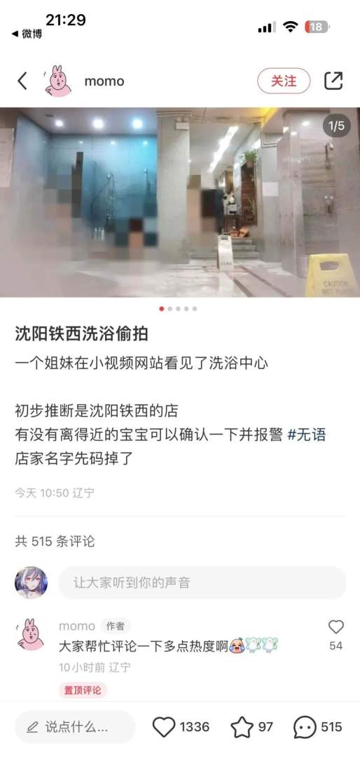 9月22日,有网友爆料在网站看到一洗浴中心偷拍的视频。视频中有女性裸露身体,其根据口音和视频内陈设,判断是沈阳一洗浴店。