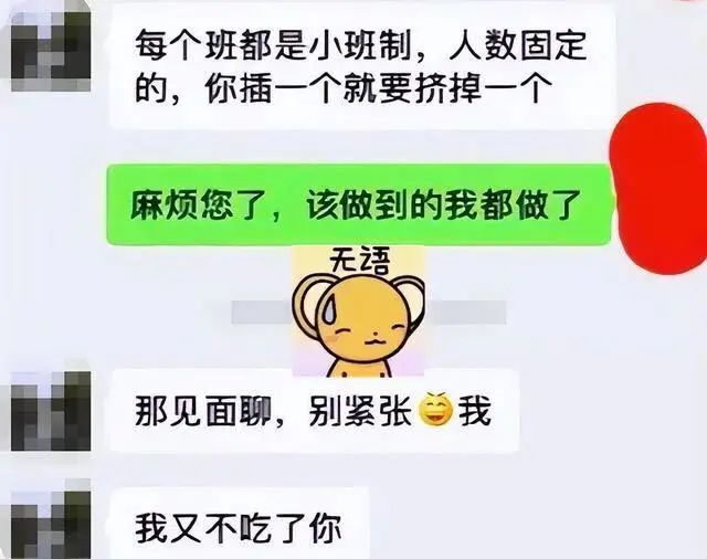 从姜校长火辣辣的目光中,王女士意识到了校长的意思,她不想失去这个机会,于是连忙对校长说:“只要孩子能入学,怎么样都行”,于是两个人互相加了微信,方便讨论孩子入学的问题。