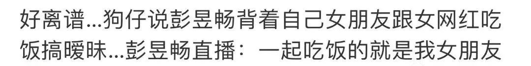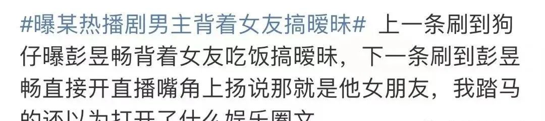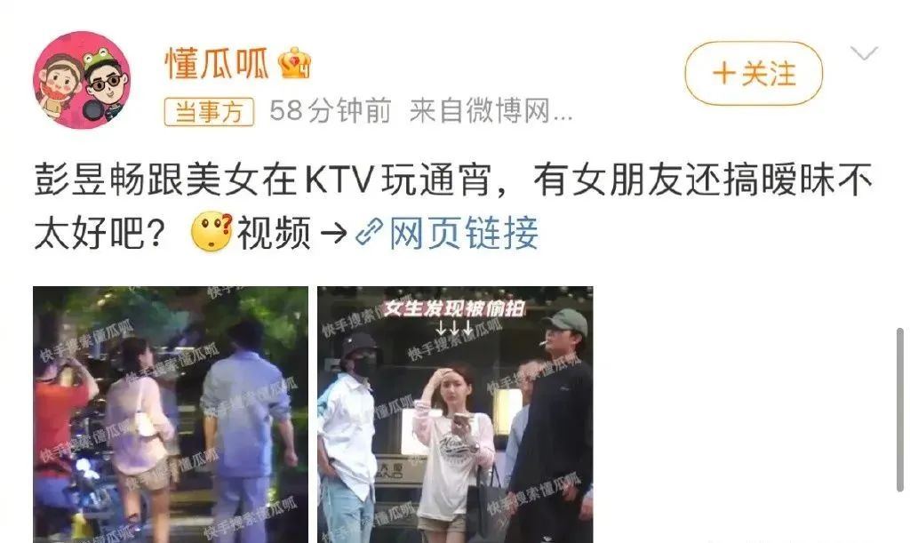 19日,有八卦媒体曝彭昱畅与PDD等人一起聚餐、去KTV,同行的还有一个女网红,爆料者直指彭昱畅背着女友搞暧昧。