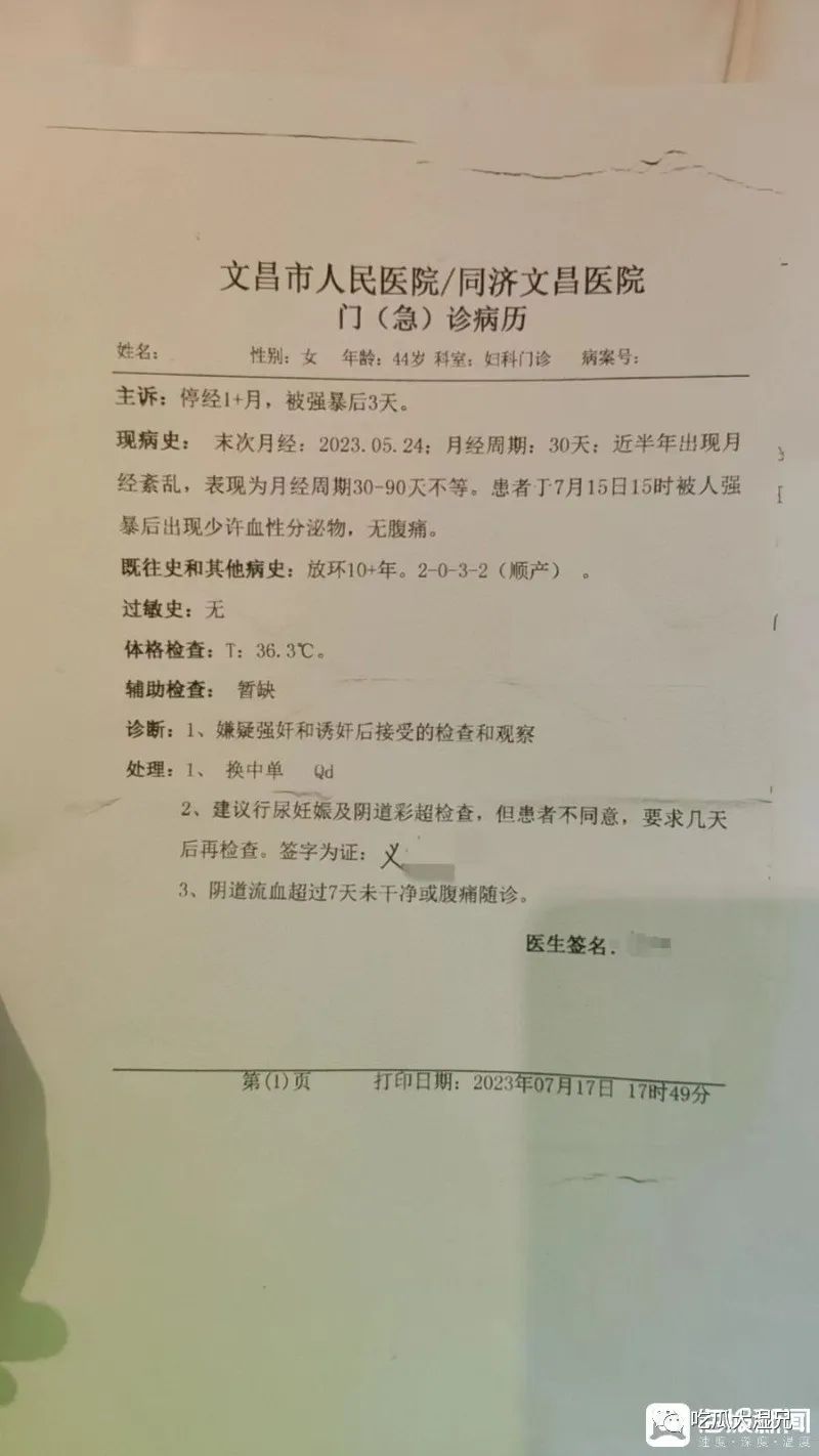 2023年7月23日中午,文昌市迈号镇的程先生和女儿回家发现了妻子义女士留下的遗书和钱包,后来还在家附近的水库中发现漂浮在水中的义女士。此前,义女士曾报案自己被性侵。