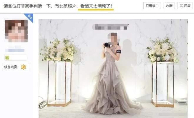 更有人直接发出一张女生的照片,说:看起来太清纯求高手鉴定一下